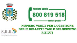 Inoltre, è disponibile il seguente numero verde 800 819 518, per la gestione delle bollette TARI e del servizio rifiuti, attivo: